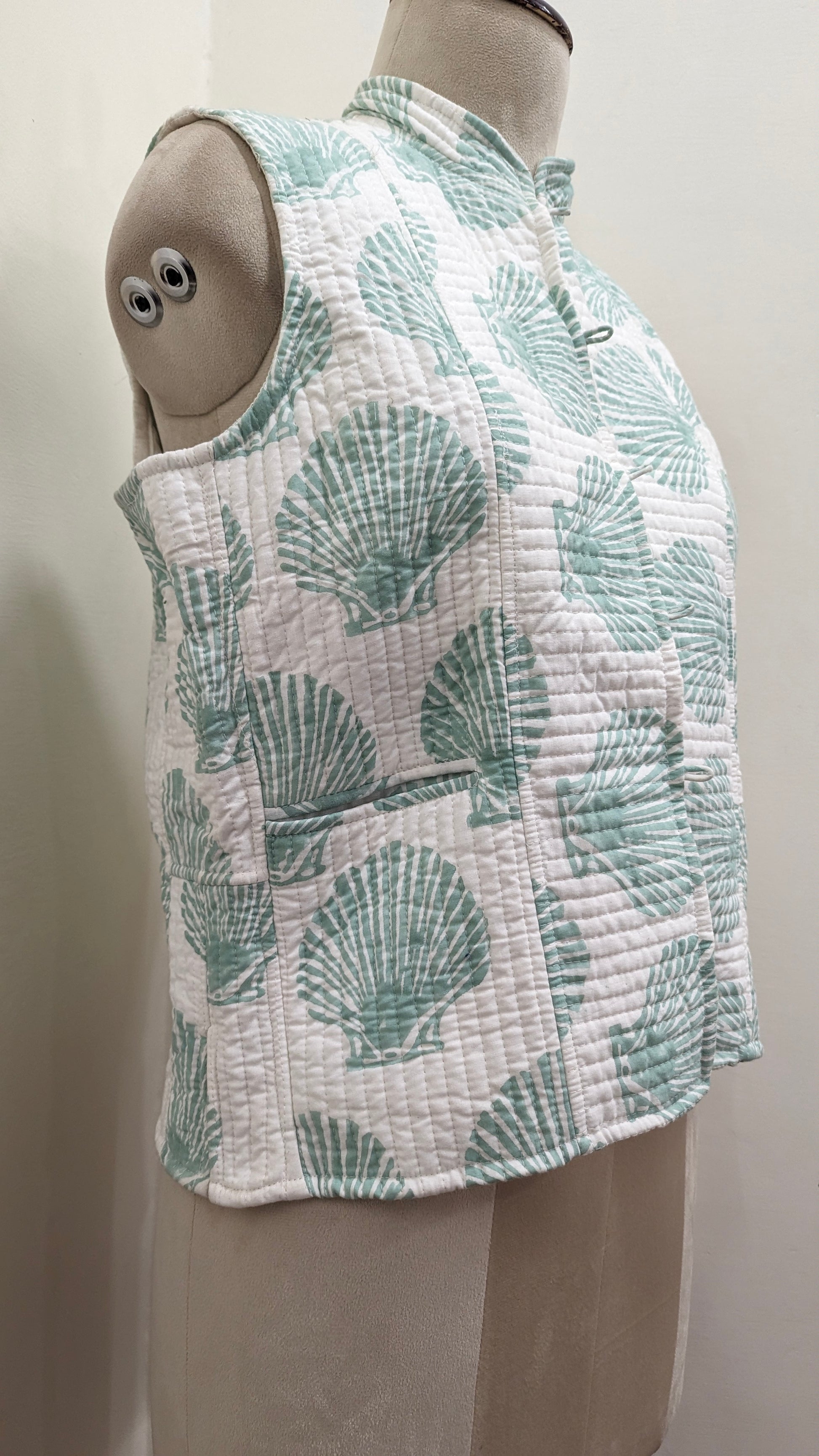 Hand block printed with delicate shell-inspired motifs, each piece tells a unique story. The soft cotton wadding provides gentle warmth without bulk, while the fully cotton-lined interior ensures comfort against the skin.