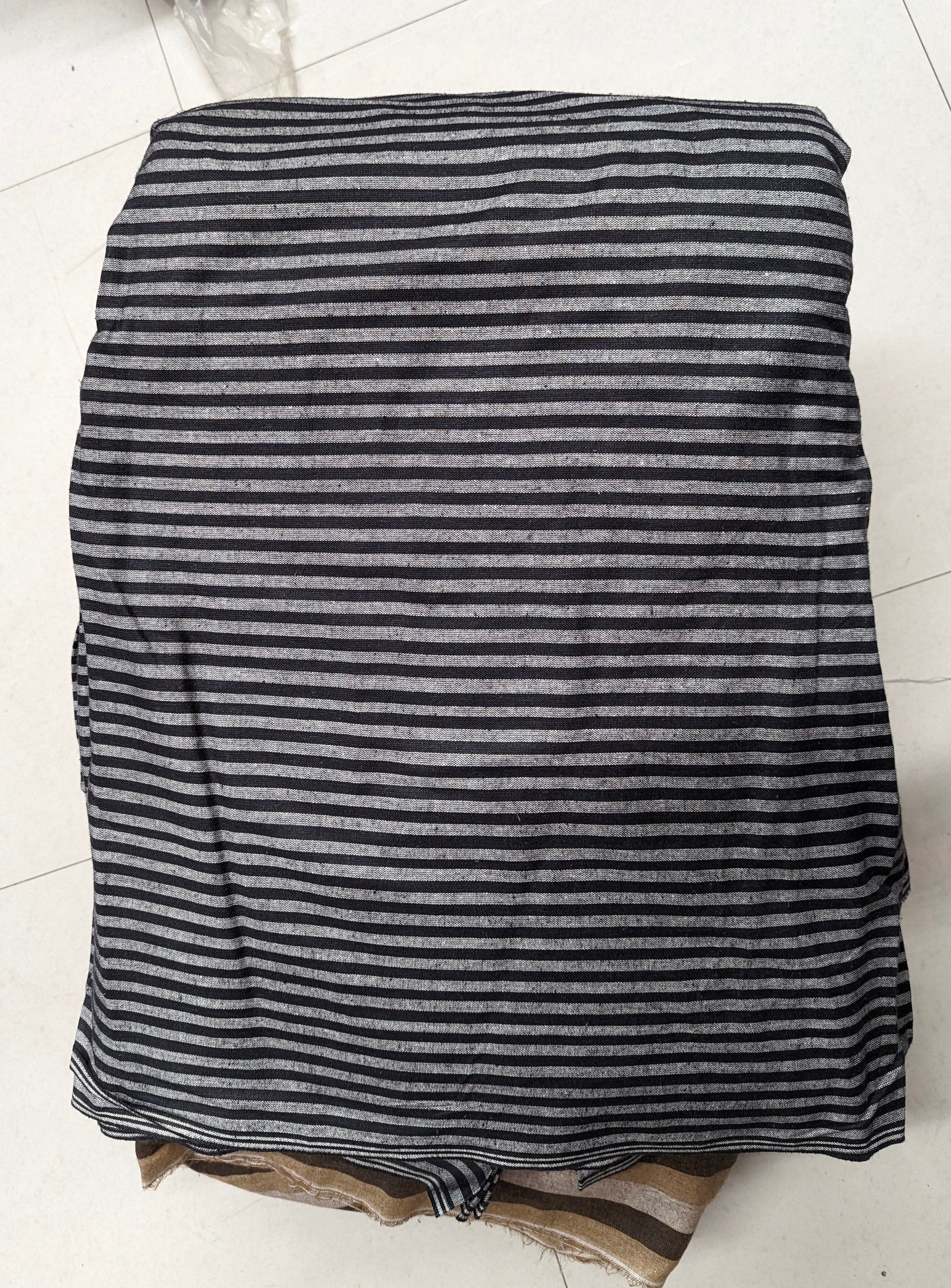 Urban Black-Grey Stripe Cotton Lining Fabric offers refined elegance for discerning makers. This versatile textile features a timeless black and grey striped pattern, crafted from premium cotton that ensures breathability and durability. Perfect for tailoring, garment construction, or upholstery projects, the soft cotton lining provides comfort against the skin while maintaining structural integrity.